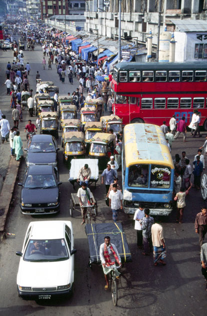 Traffic jam near local bus station at Dhaka. Bangladesh.