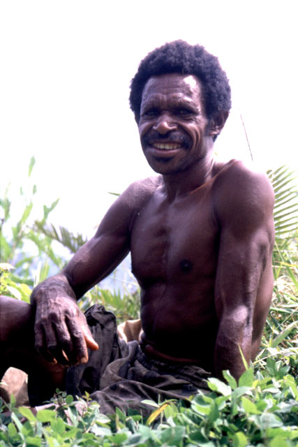 Villager from Dani tribe carrying small child. Papua, Indonesia.
