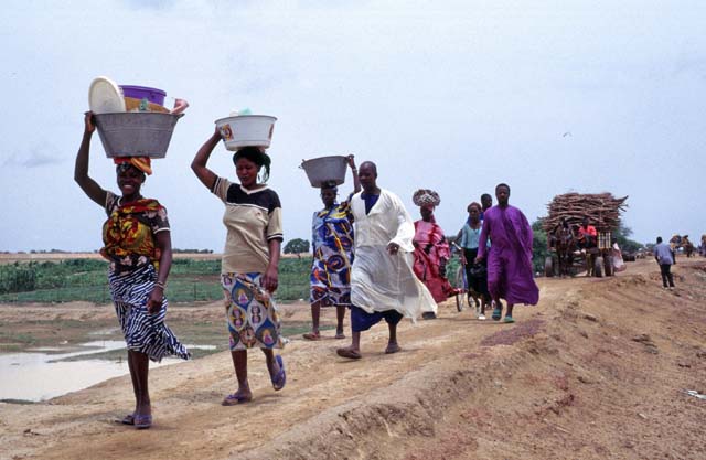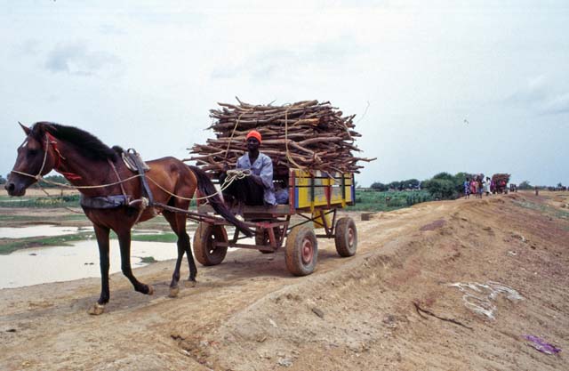 Villager carries wood for selling at Monday market, Djenné city. Mali.