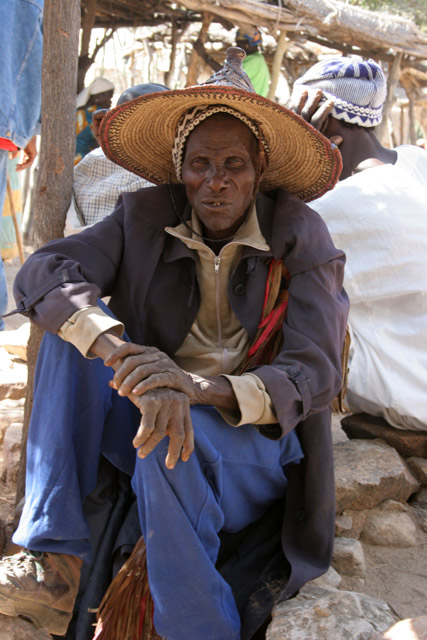 At the market at Rhumsiki (Roumsiki) village at Mandara Mountains. Drinking of local alcohol is very popular during market. Cameroon.