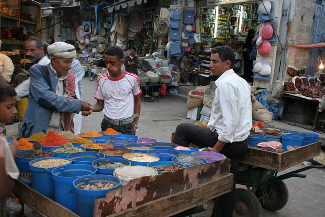 Dates are very popular. Market at center of Ta'izz city. Yemen.