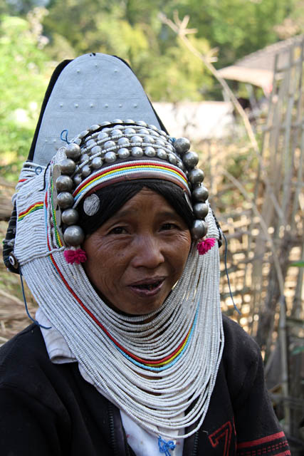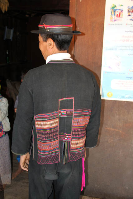 Akha man at traditonal clothes, area around Kengtung town. Traditionaly clothes are embroidered very much. Myanmar (Burma).