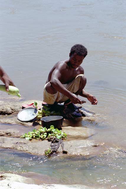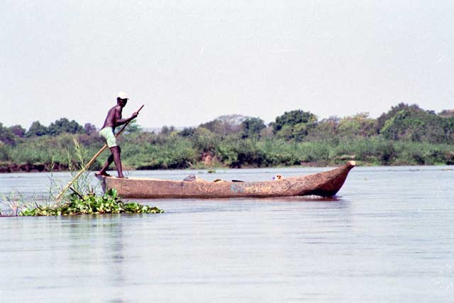 Local villager in pirogue at Tsiribihina river. Madagascar.