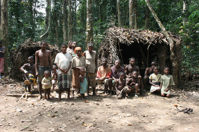 Traditional dance at Pygmy village down to the Lobe River. Cameroon.